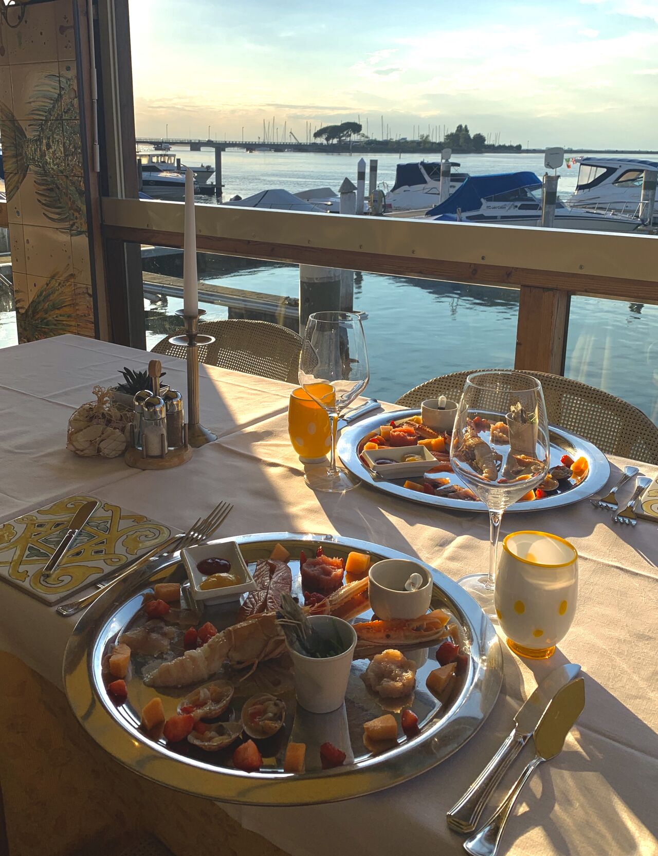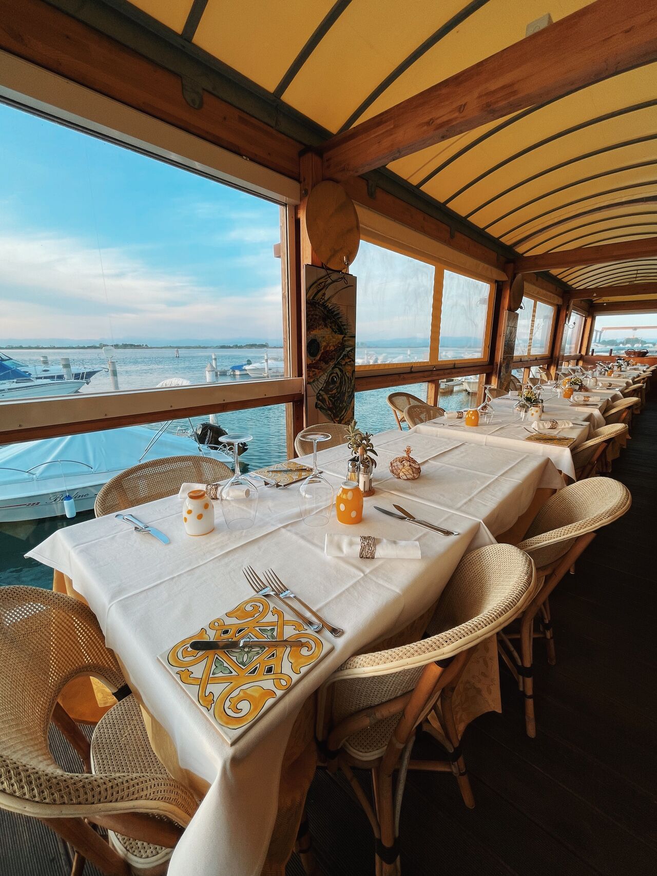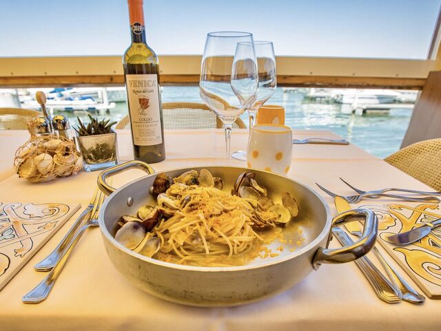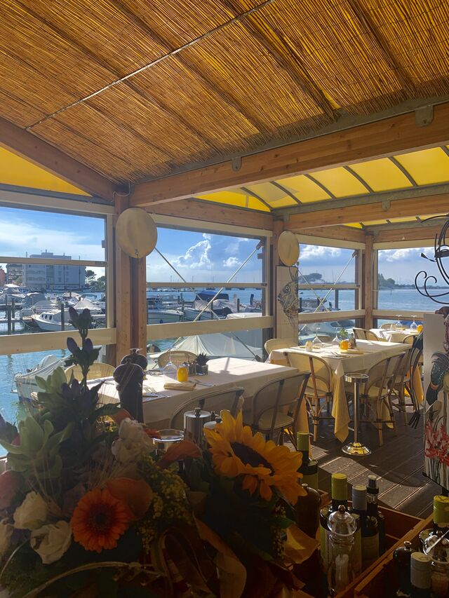 Romantic setting with a splendid view over Grado lagoon. The landscape is characterised by ever-changing shapes and colours and features small islands, canals and submerged seabeds that emerge when the tides change. The restaurant has an experienced staff led by Michela, the owner. The Restaurant offers 40 dining places. Reservation is strongly recommended.